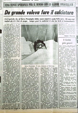 Patrizia viene ferita ma si salva. Enrico è colpito in modo gravissimo. Trasportato al Policlinico, viene operato d’urgenza: per tenerlo in vita i medici devono amputargli la gamba sinistra. Il ragazzo sopravvive, ma il suo futuro calcistico finisce prima ancora di poter cominciare.