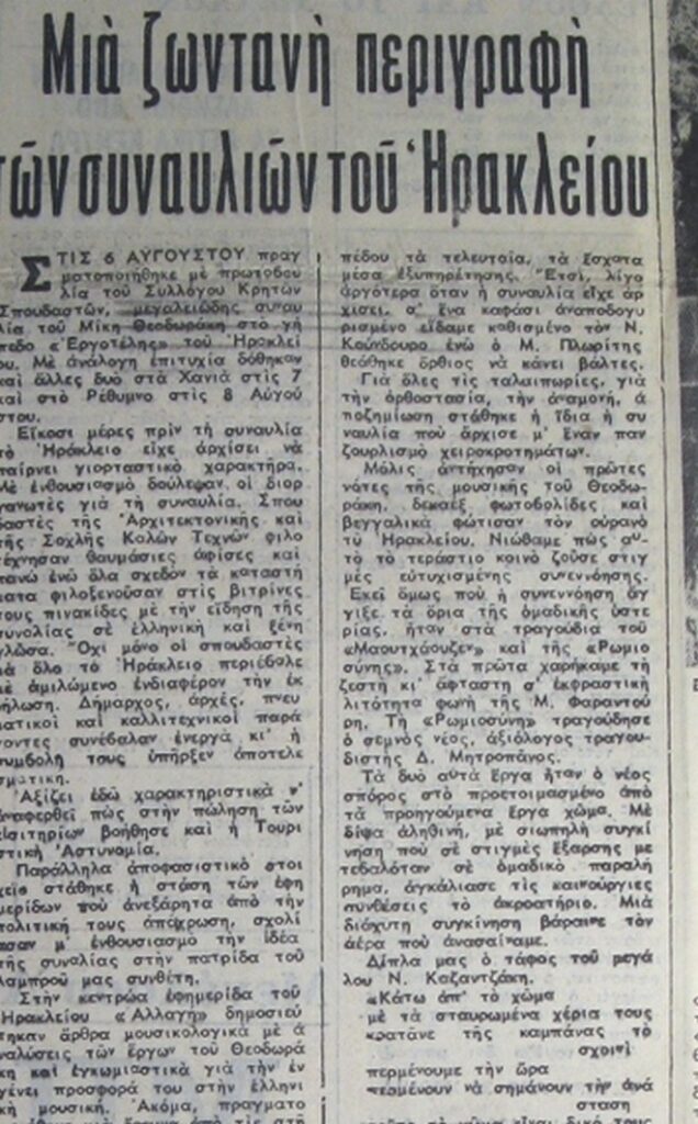 Candia, estate 1966. Lo stadio Martinengo è colmo di gente, luci e note che si librano nell’aria. Mikis Theodorakis, compositore destinato a diventare simbolo della resistenza contro il regime dei Colonnelli, sale sul palco. L’Ergotelis, squadra di Creta nata nel 1929 da rifugiati greci dell’Asia Minore, ha deciso di ospitare l’evento, senza sapere che quel concerto avrebbe cambiato per sempre il destino del club.