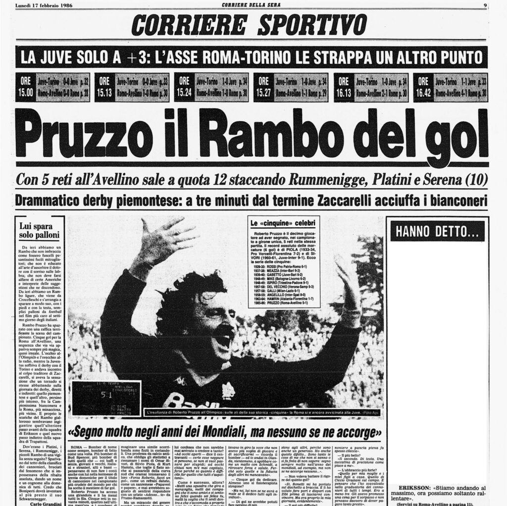 16 febbraio 1986: una giornata gelida all’Olimpico diventa storia grazie alla cinquina di Pruzzo