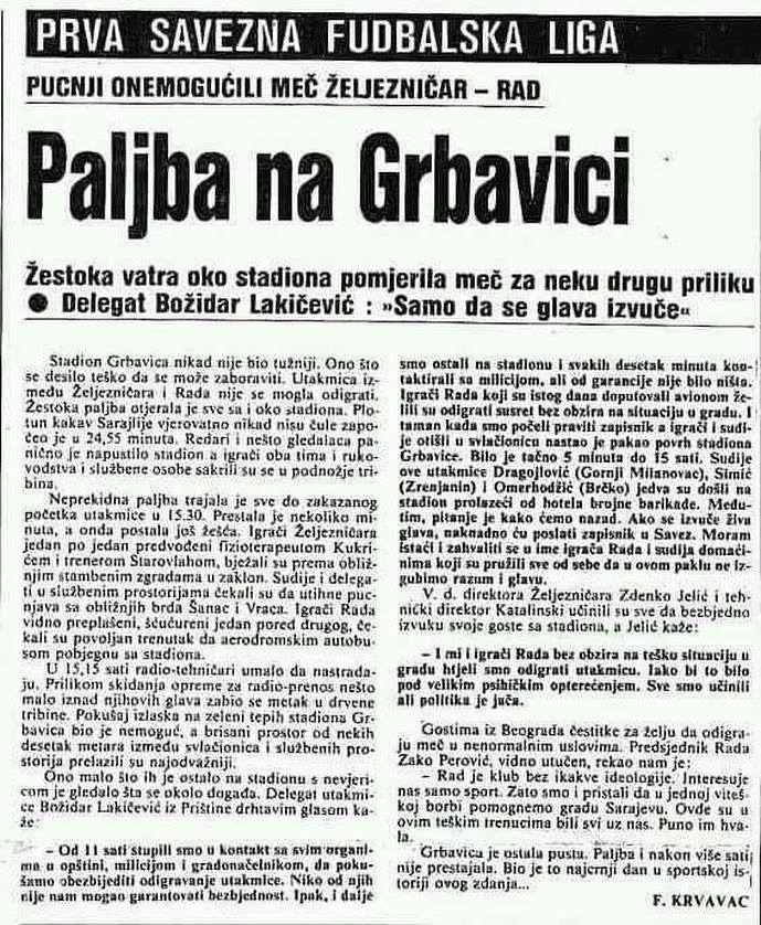 Doveva essere una normale partita del campionato jugoslavo tra FK Željezničar e il FK Rad. Non lo fu mai.