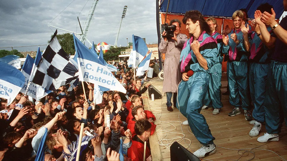 Alla fine della stagione, a festeggiare fu l’Hansa Rostock, guidato da Uwe Reinders, un allenatore proveniente dall’Ovest che portò un approccio completamente diverso. Raccontò di essere rimasto sorpreso il primo giorno di allenamento: “I giocatori erano in fila ad aspettarmi per il saluto ‘Sport Frei’”. Rispose ironicamente chiedendo se stessero aspettando un generale.